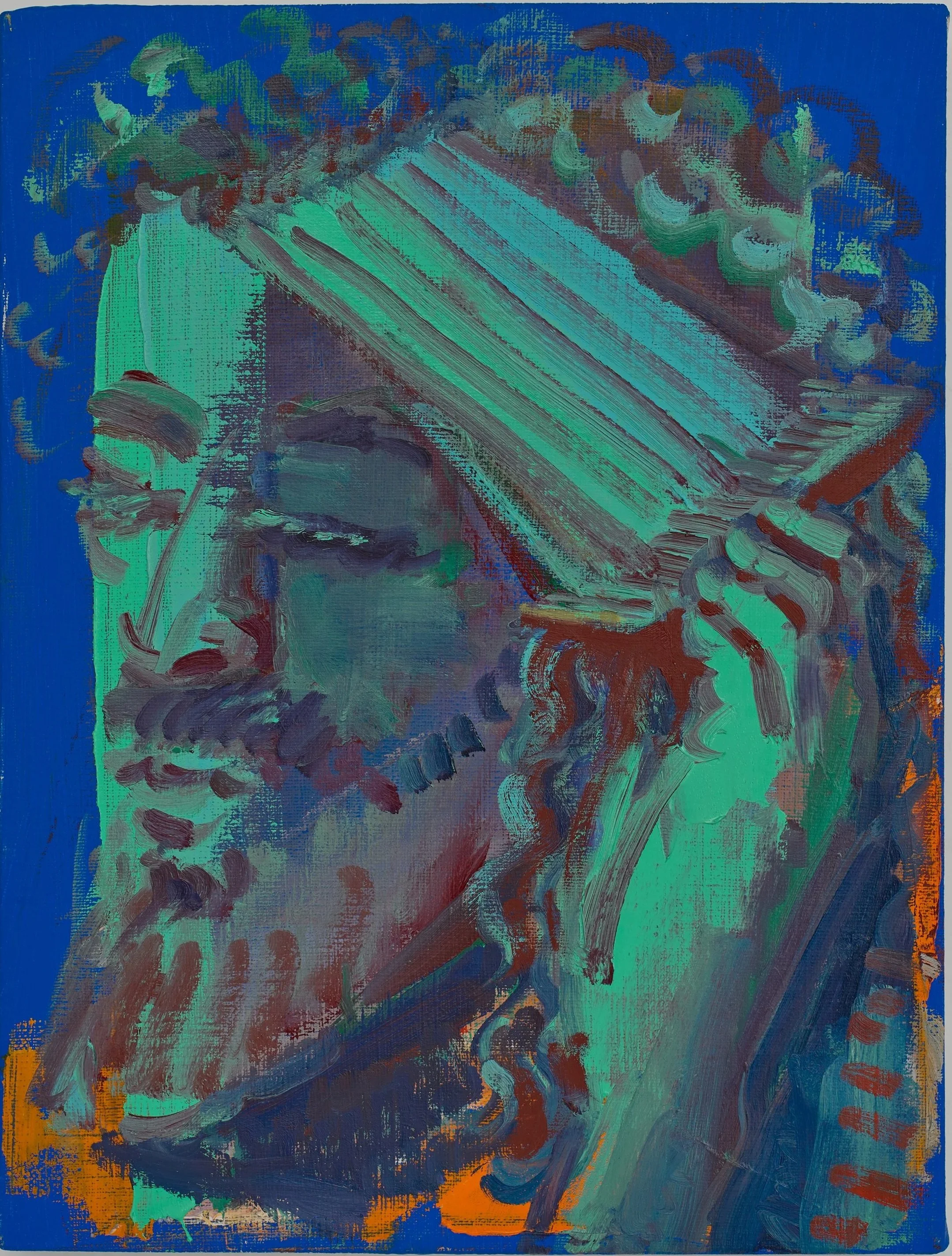 Fragment of Orgasm Stele of Inanna (“Holy Loins”), 10”x14”, oil on linen, 2023