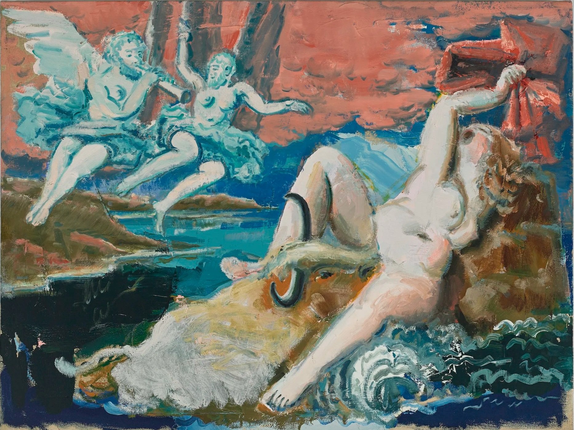 Sacred Orgasm of Inanna (after Titian), 24”x32”, oil on canvas, 2023